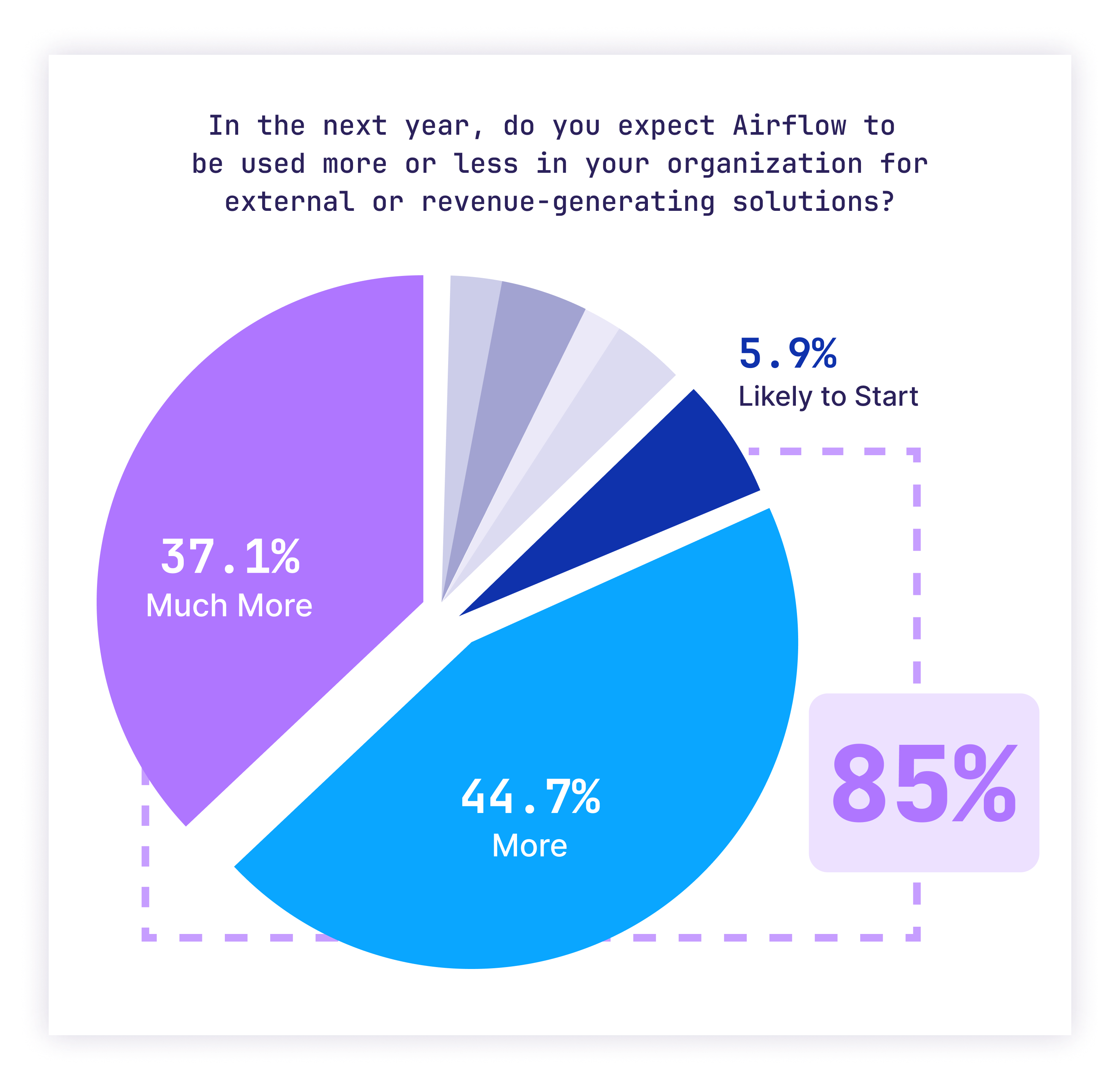 85% of respondents expect to use Airflow for more external or revenue generating solutions next year.