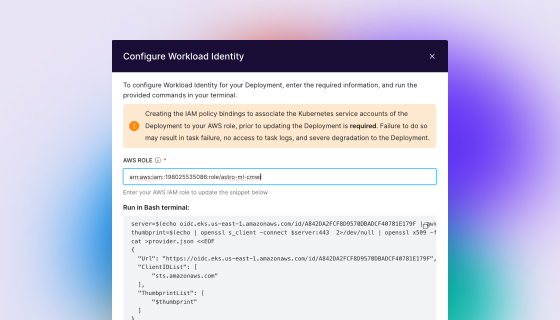 Fortifying Astro’s security by introducing Custom Deployment Roles and Customer Managed Workload Identity capabilities, ensuring secure, compliant access to data services.